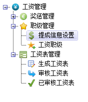 工資模塊的操作可分為六個(gè)步驟:分別是 提成信息設(shè)置—工資職級設(shè)置—員工職級設(shè)置—生成工資表—審核工資表—已審核工資表