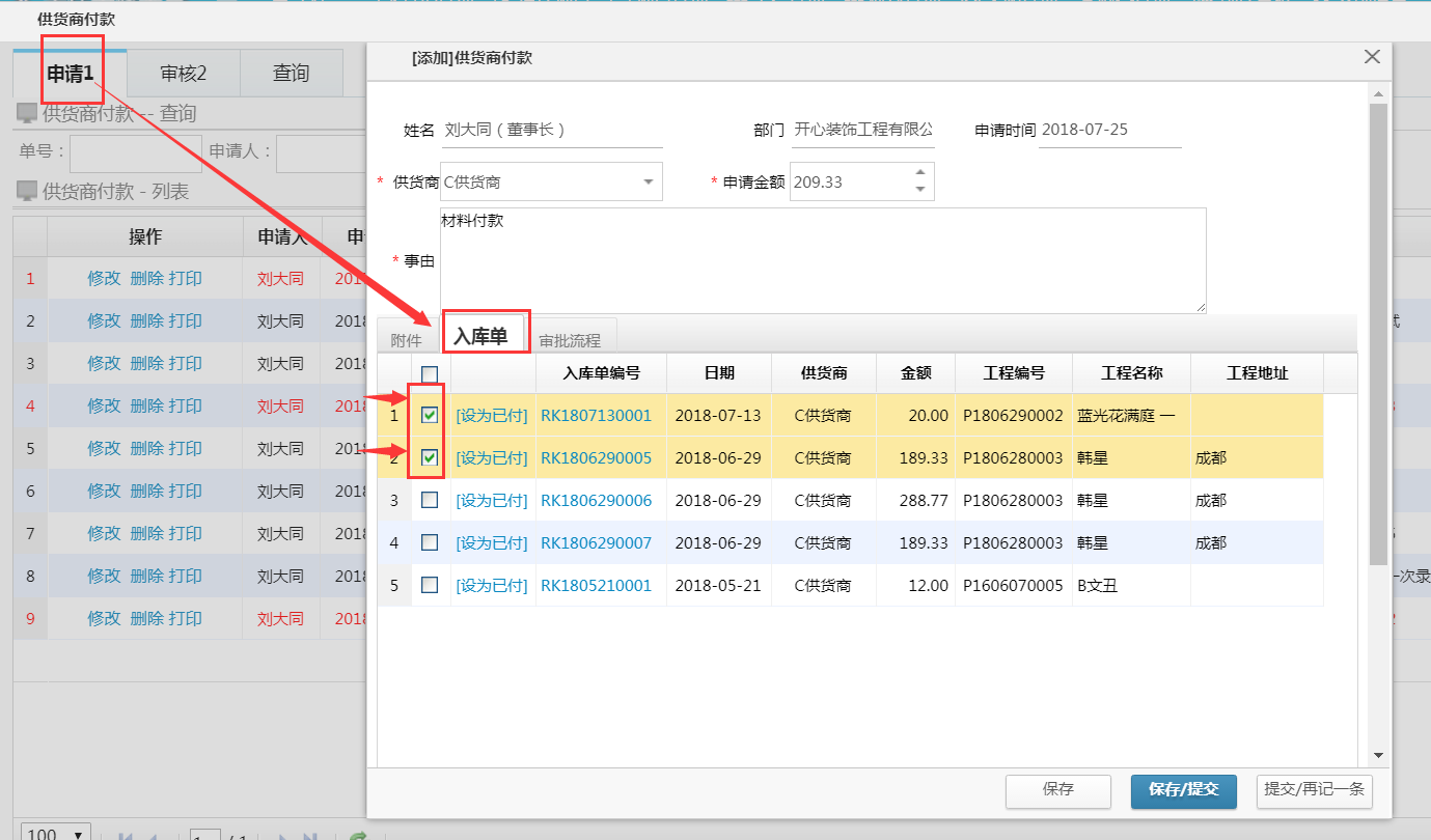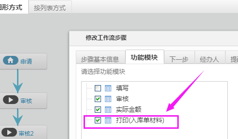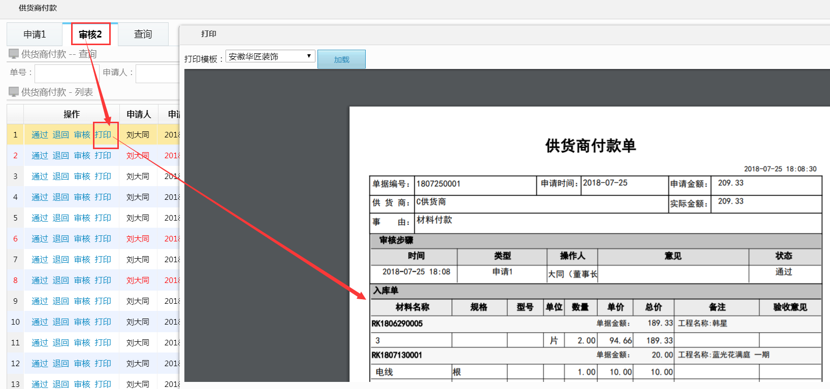 首先在工作流程中將【打?。ㄈ霂?kù)單材料)】此項(xiàng)功能選中,我們?cè)诠ぷ髋_(tái)---供貨商付款---打印才能顯示相關(guān)信息