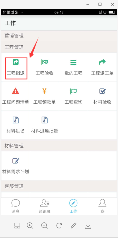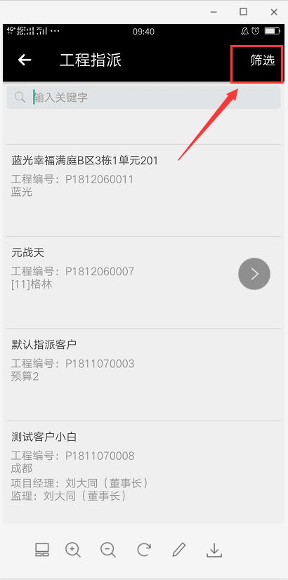 依次點(diǎn)擊:工程指派--選中工程--(可提前篩選工程的指派狀態(tài))--選擇相關(guān)的工作人員--完成指派