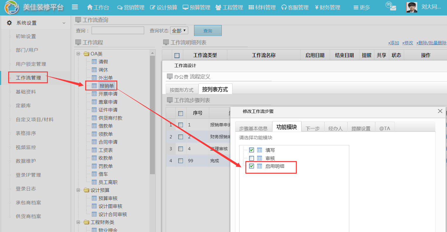通過工作流設置開啟明細