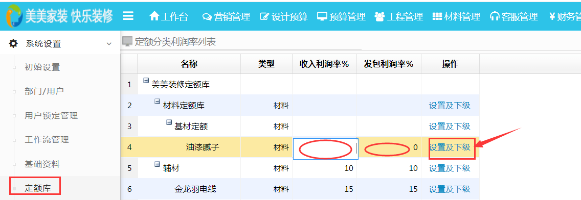 咱們可直接通過系統(tǒng)完成一系列的操作,無須浪費時間通知每位設(shè)計師價格的變動信息。最新上線的定額分類利潤操作是怎么一回事呢?使用美佳ERP,在系統(tǒng)設(shè)置中就可直接采用定額分類利潤率來批量設(shè)置材料的利潤。這樣咱們設(shè)計師在做預(yù)算的時候可直接按定額新設(shè)置的價格給客戶報價,統(tǒng)一管理不亂套。