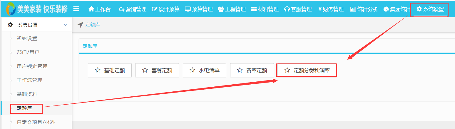 2、依次點擊系統(tǒng)設(shè)置--定額庫--定額分類利潤率