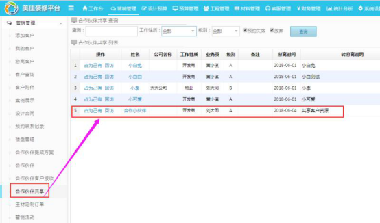 注:只有系統(tǒng)中添加的合作伙伴才能轉(zhuǎn)入共享,微信關注來的不能共享;