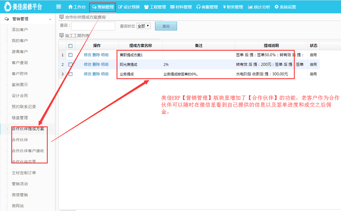 客戶(hù)帶客戶(hù)是既省時(shí)間簽單成功率又高的銷(xiāo)售途徑。想要回單就要把老客戶(hù)轉(zhuǎn)化為我們的合作伙伴。美佳云裝通過(guò)掃描二維碼對(duì)接微信是透明便捷的合作平臺(tái),大大的促進(jìn)客戶(hù)作為合作伙伴來(lái)向我們提供信息,與老客戶(hù)保持了粘度;也很大程度上杜絕合作伙伴的后顧之憂(yōu),比如把信息介紹給我們有沒(méi)有簽單成交,簽單金額是多少,自己能拿到多少傭金等等。